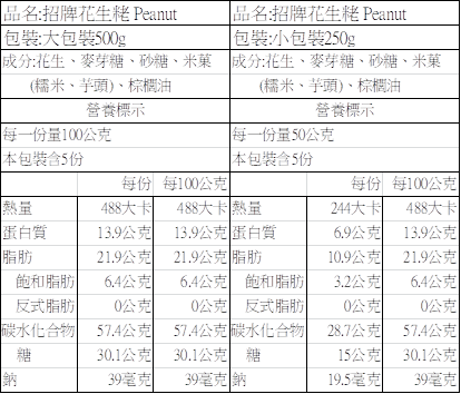 商品名稱:招牌純花生粩